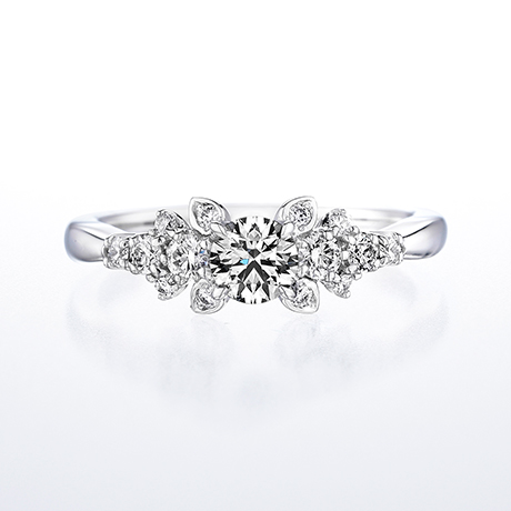 - トレセンテの花びらをモチーフにした代表的な婚約指輪モデル「フローラ」はトレセンテでしか買えない