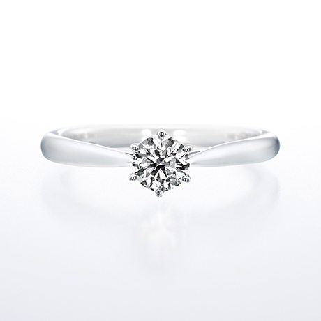 一粒のダイヤを目立たせて輝かせる伝統的なデザインです。