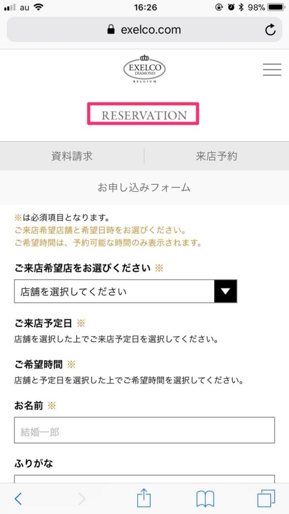 エクセルコダイヤモンドのWEBの来店予約のやり方