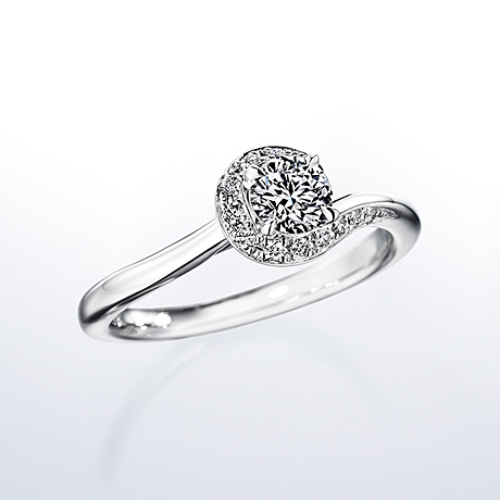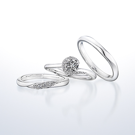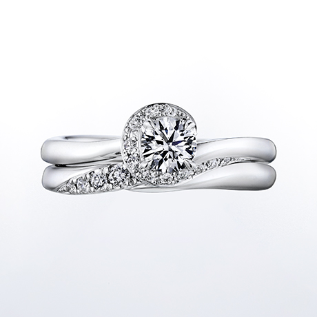 裸石のままでも強く輝くシライシのダイヤモンドをセットすることで、ひときわ大きく輝いて見える流麗なデザイン。ふたりが選んだ特別なダイヤモンドを包むメレダイヤが、緩やかに一体となる緻密なラインを美しく描きます。愛を誓ったダイヤモンドの輝きがふたりの未来を明るく、永遠に照らし続けるよう願いを込めて。