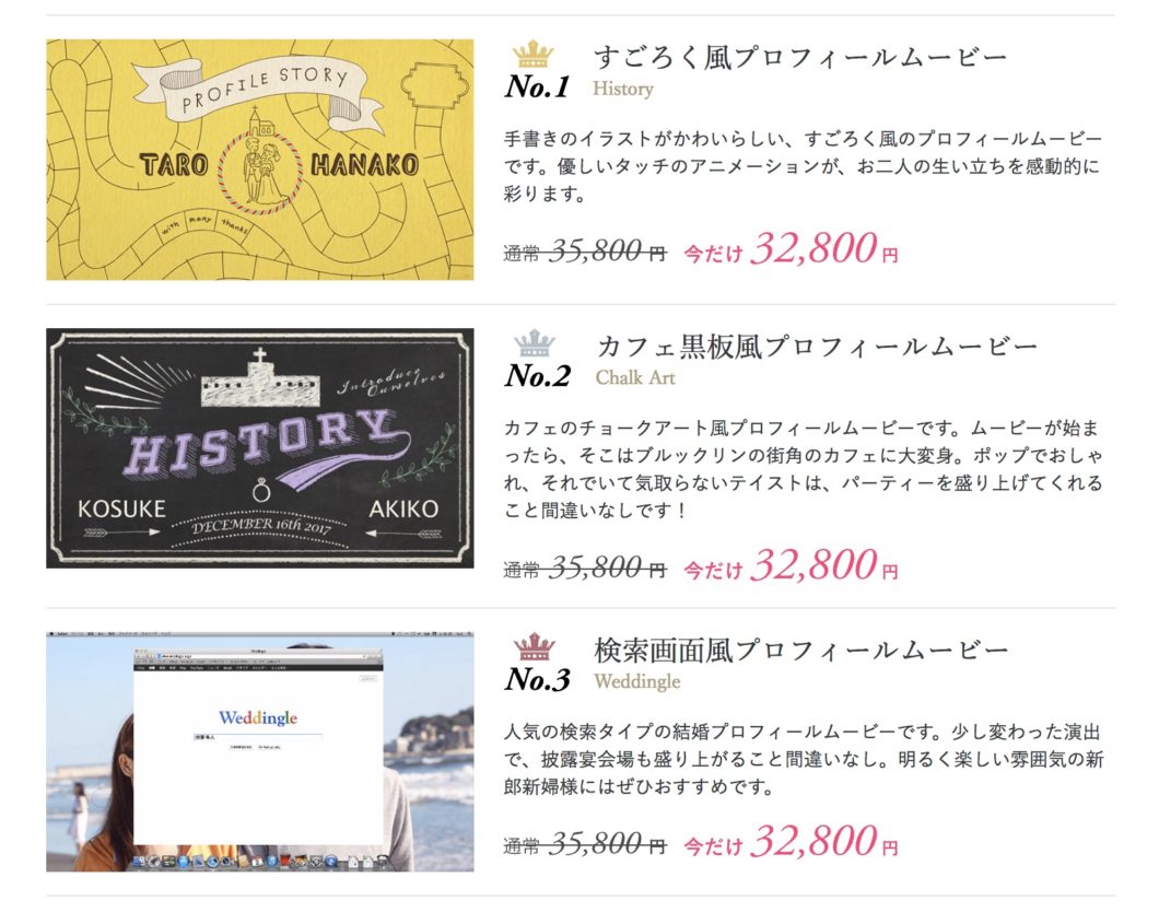 もちろん「動画サンプル」がありますので、こんな風に出来上がって結婚式で流せるのか〜とイメージが可能です。