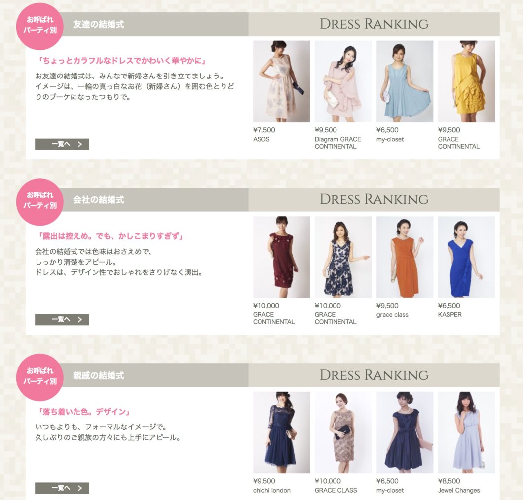 「my closet」のサイトではパーティーの『シチュエーション』別にオススメドレスが検索出来るようになっていますので、